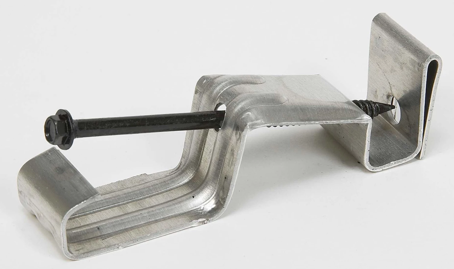 - K-style hidden hanger with screw used to hang 4-in galvanized gutter