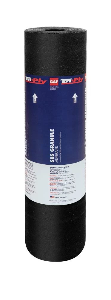 Tri-Ply® SBS Granule Cap Sheet is a granule-surfaced modified bitumen membrane manufactured to stringent GAF specifications. Its core is a strong, resilient, non-woven polyester mat that is coated with flexible, SBS polymer-modified asphalt and is surfaced with mineral granules.