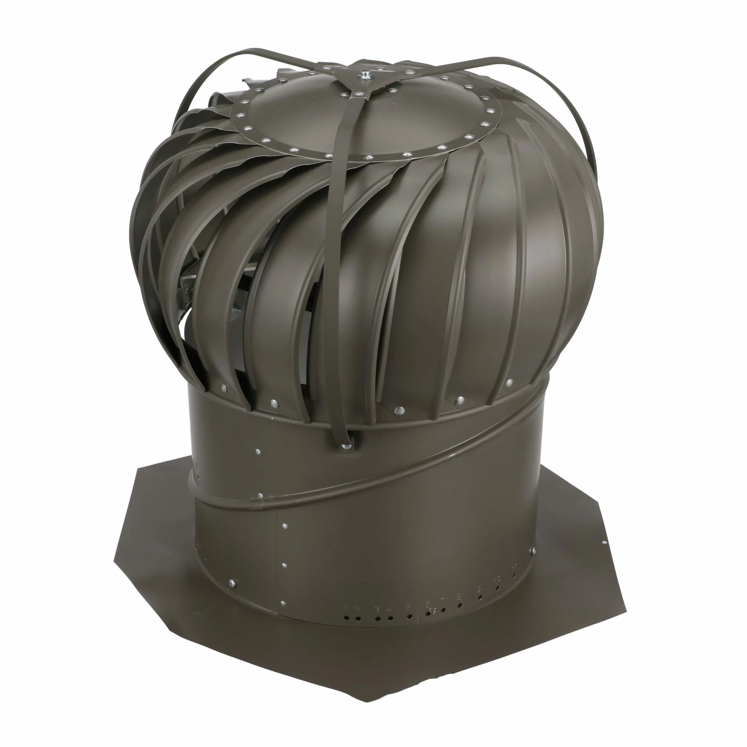 Wind turbines are a type of attic exhaust vent that make up half of a balanced attic ventilation system for each roof. Intake vents make up the other half of the system. Together they help remove any built-up heat and moisture inside the attic for year-round ventilation. Use the Lowe’s calculator to determine how many individual wind turbines are needed per roof.