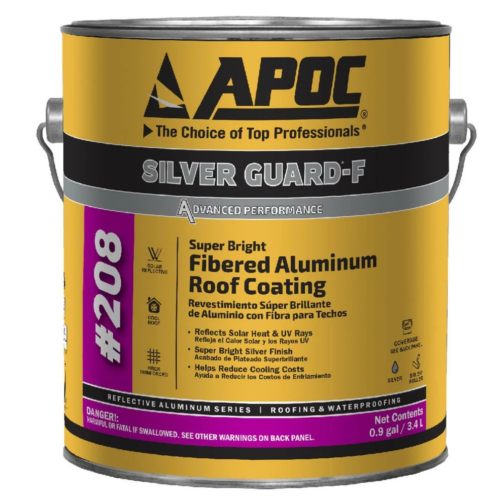 APOC® 208 Silver Guard-F® Fibered Aluminum Roof Coating is a 2 pound, professional grade reflective coating formulated to provide a bright and long lasting finish. The aluminum pigment in this product enables it to form a silver shield to reflect the sun’s destructive rays. Cooling costs can be reduced while the underlying roofing materials are protected and preserved. APOC® 208 serves as a rust inhibitor and will aid in the prevention of corrosion for metal surfaces. APOC® 208 also contains interlocking fibers which increase the life and durability of the coating.
