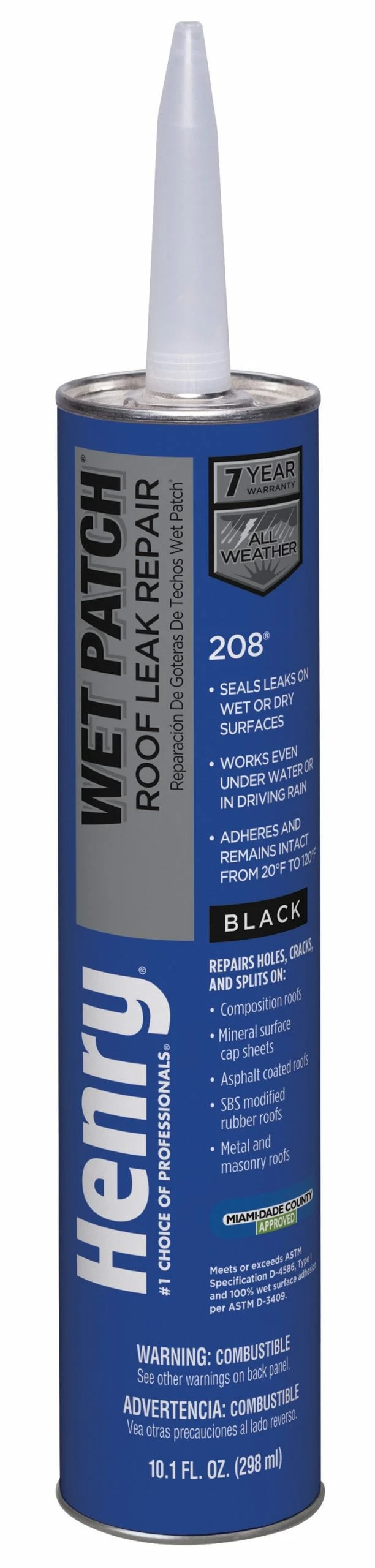 Henry 208 wet patch roof leak repair 10.1 Oz, roof cement, for wet or dry surface, adheres even under water, cartridge.