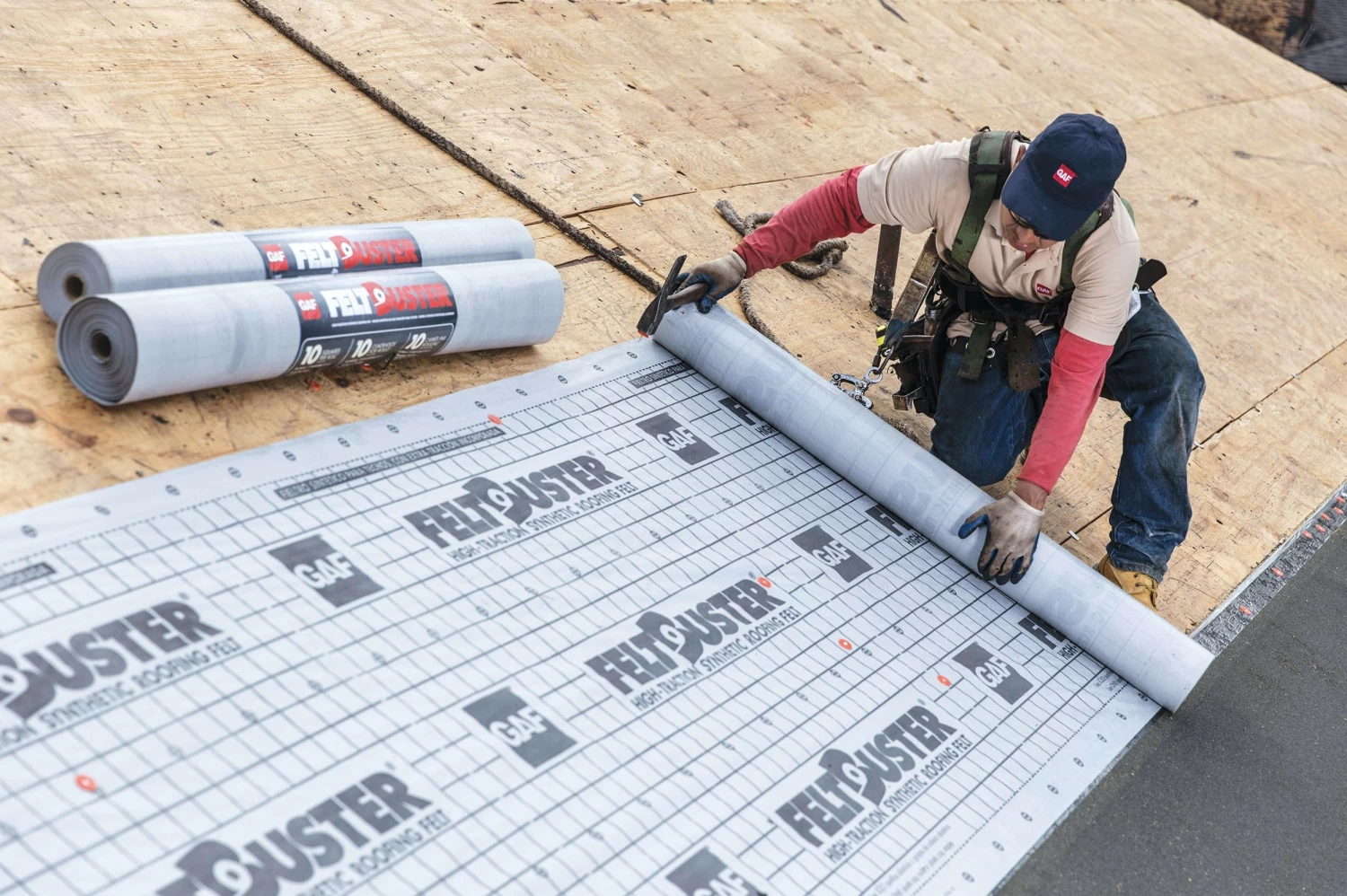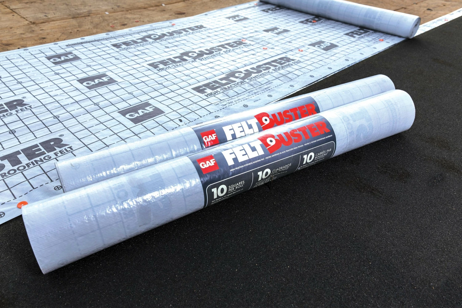 Quality roofing underlayment is critical for helping to prevent wind-driven rain from infiltrating under the roof’s Shingles and potentially damaging the home’s structure and interior. Traditional asphalt felt underlayments tear easily and absorb moisture, leading to wrinkling that telegraphs through the Shingles. Competitively priced with typical #15 and #30 asphalt felts, GAF FeltBuster High-Traction Synthetic Roofing Felt is virtually untearable and will not absorb moisture, helping to prevent wrinkling. Its specially designed surface combines enhanced walk ability with a cooler working surface (versus black asphalt felts). Part of the GAF Lifetime Roofing System, FeltBuster High-Traction Synthetic Roofing Felt is covered by up to a Lifetime Limited Warranty when installed on Lifetime Shingles roofs.
