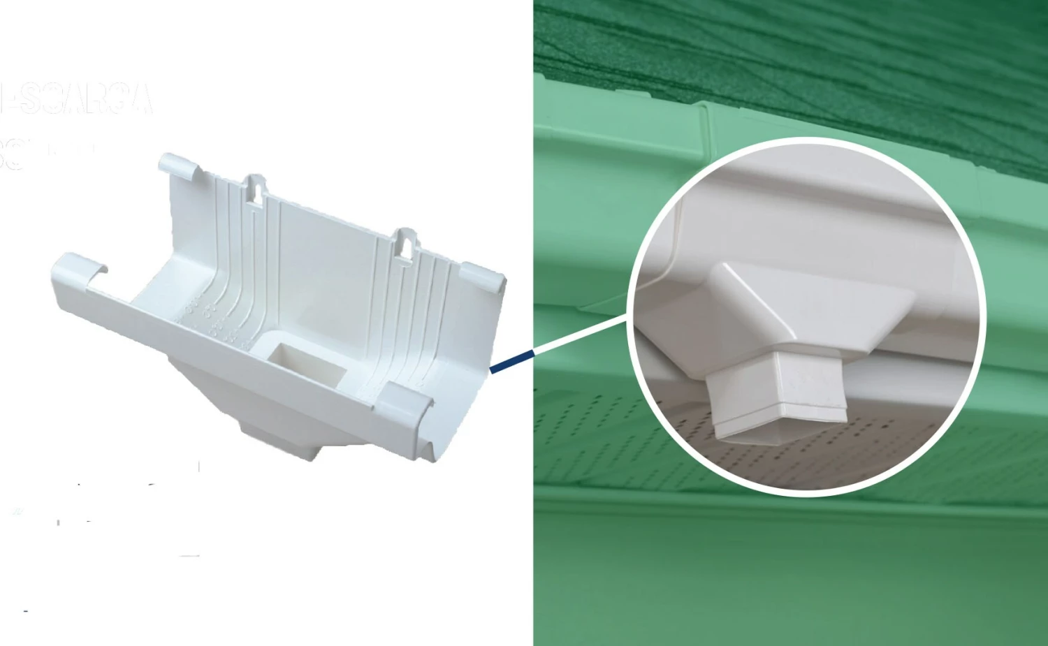 - Use the end with outlet to funnel rainwater from the gutter into the downspout