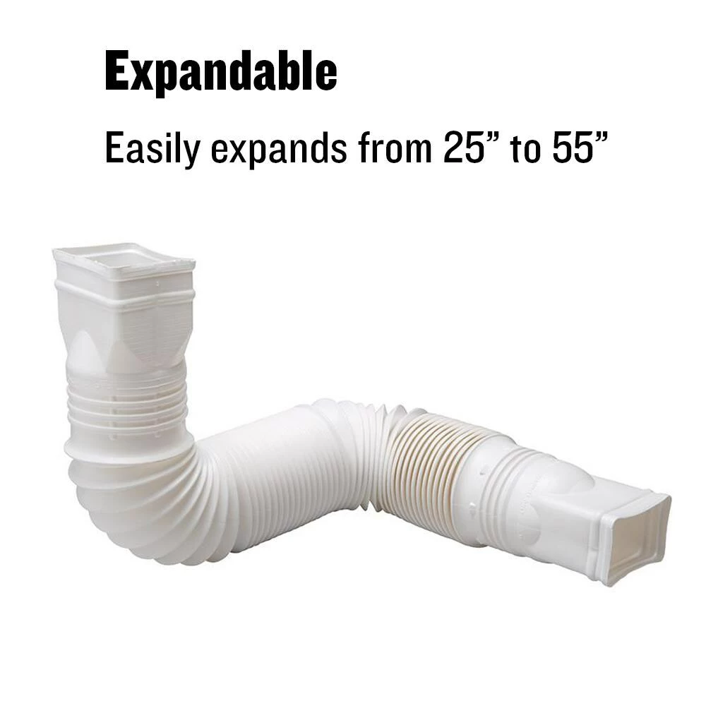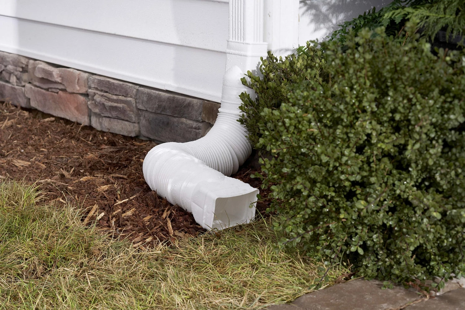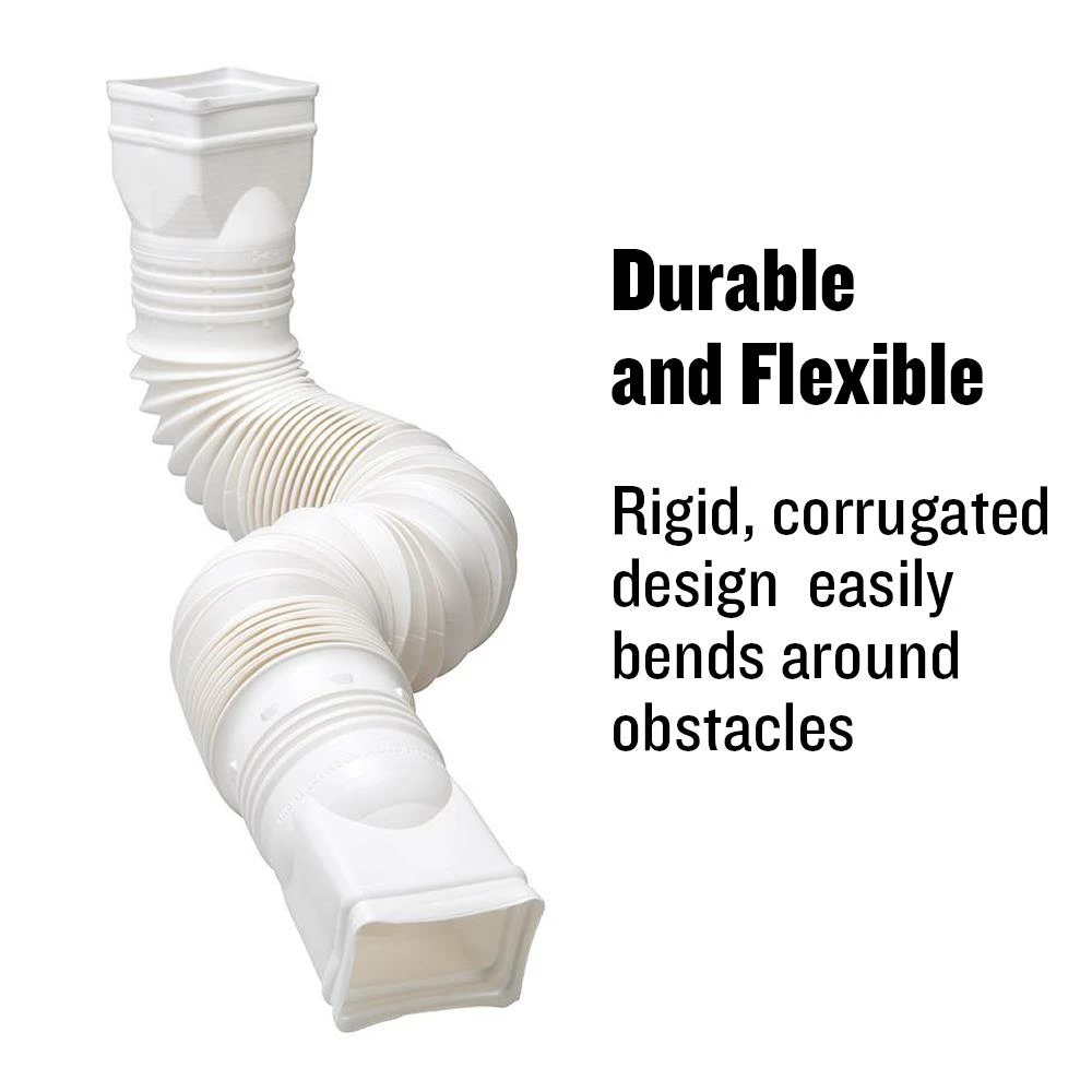 The Flex-A-Spout downspout extension features a durable plastic construction and white color to match your home. This flexible downspout extension can be used to redirect runoff and help prevent water damage. This downspout extension fits 2 in. x 3 in. and 3 in. x 4 in. downspouts as well as 3 in. and 4 in. round downspouts.
