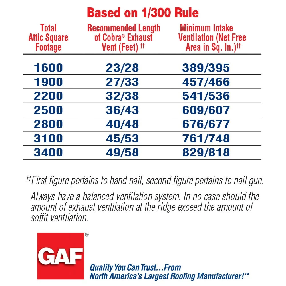 - Effective: provides 14.1-sq in/linear foot of net free ventilating area
