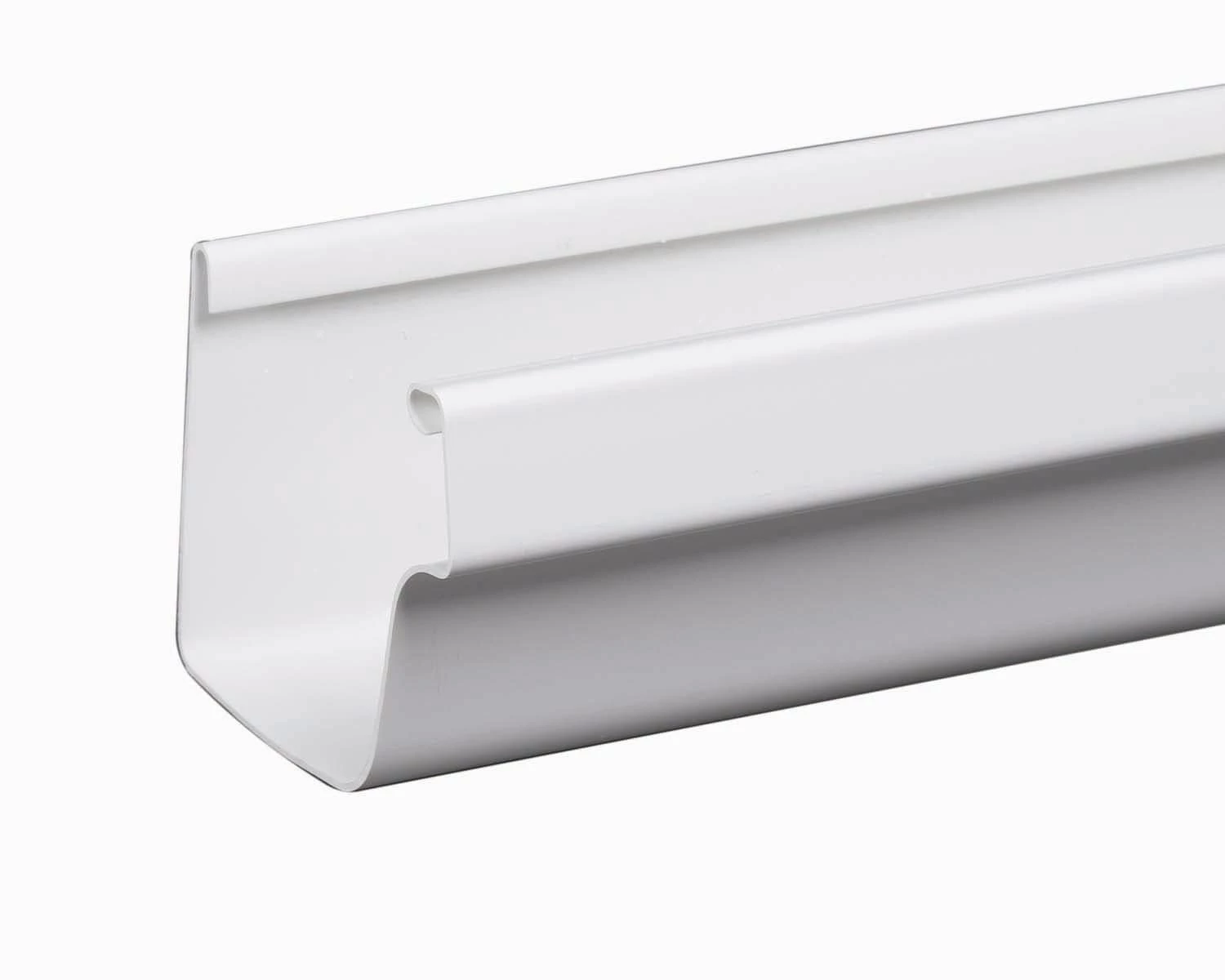 The Amerimax 5 In. x 10 Ft K-style vinyl gutter is lightweight and easy to install. The high-capacity gutter channels and redirects rainwater to help prevent garden erosion and foundation damage. It is engineered to withstand harsh weather conditions. The vinyl material resists rusting and corrosion. The gutter is maintenance free and cleans with a hose. It does not require paint or sealants for installation, and the traditional style complements most homes. Hooks are required for installation (not included).